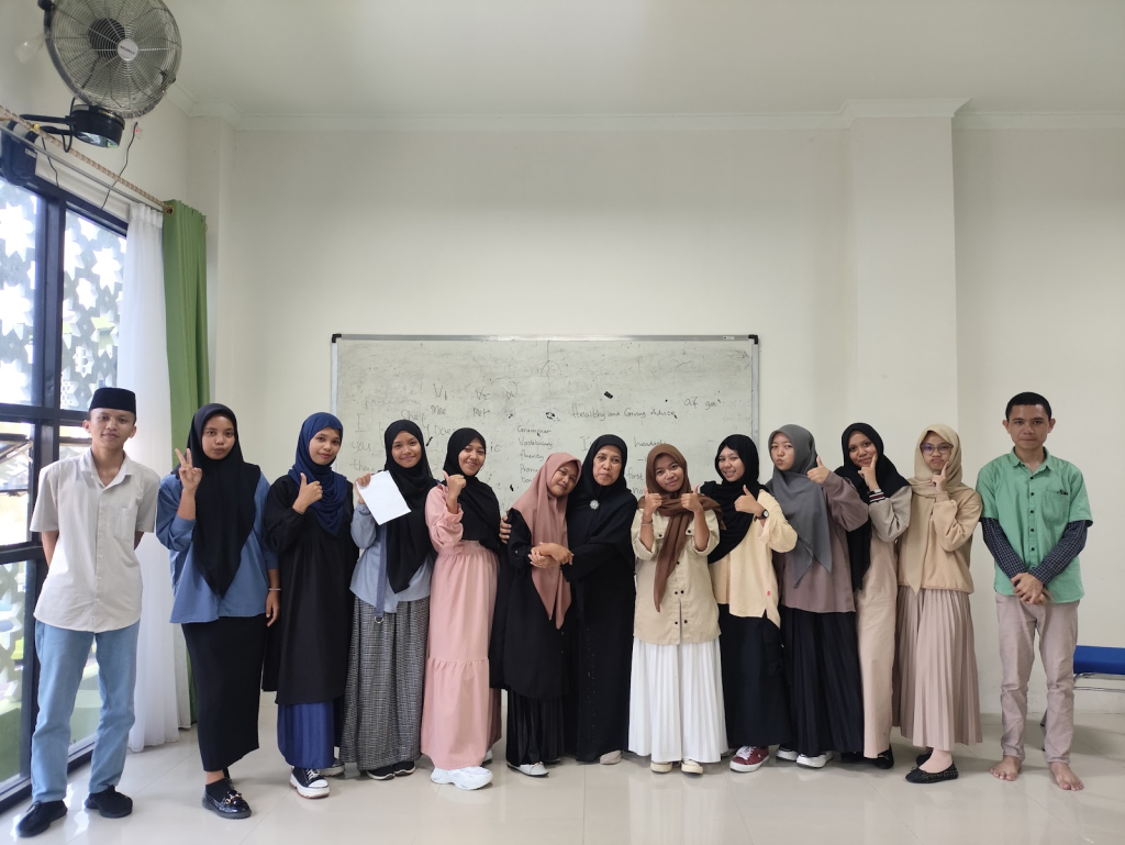Pada sesi terakhir, mahasiswa mendapatkan materi “Health and Giving Advice” yang dibawakan oleh Dr. Harni Jusuf, M.Pd., bersama co-mentor Rara Ibrahim. Materi dikemas interaktif melalui diskusi dan praktik percakapan sederhana, sehingga mahasiswa dapat langsung mengaplikasikan ungkapan-ungkapan yang relevan dalam kehidupan sehari-hari.